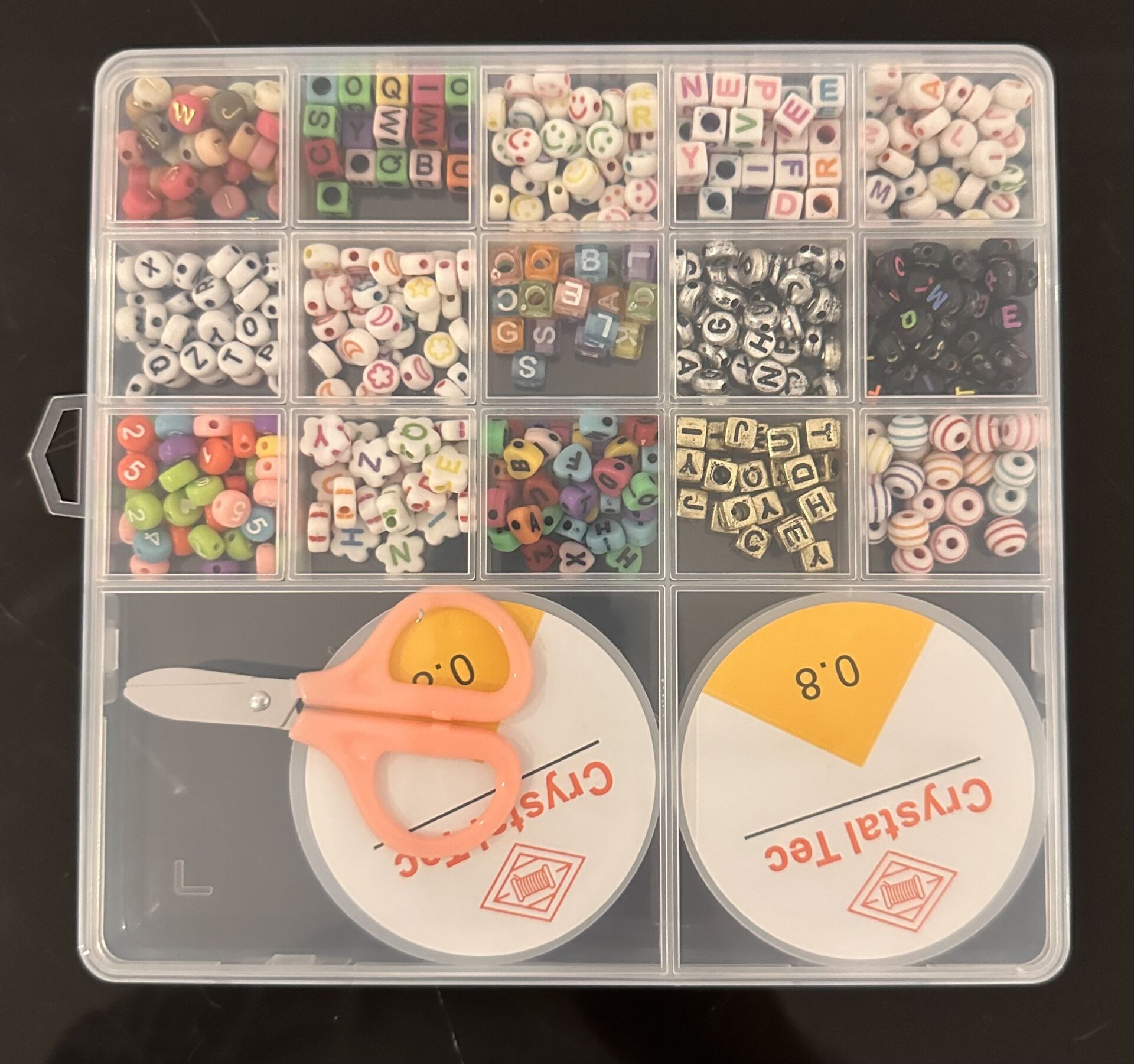 Bölmeli şeffaf kutusu sayesinde boncuklar karışmadan düzenli şekilde saklanır.