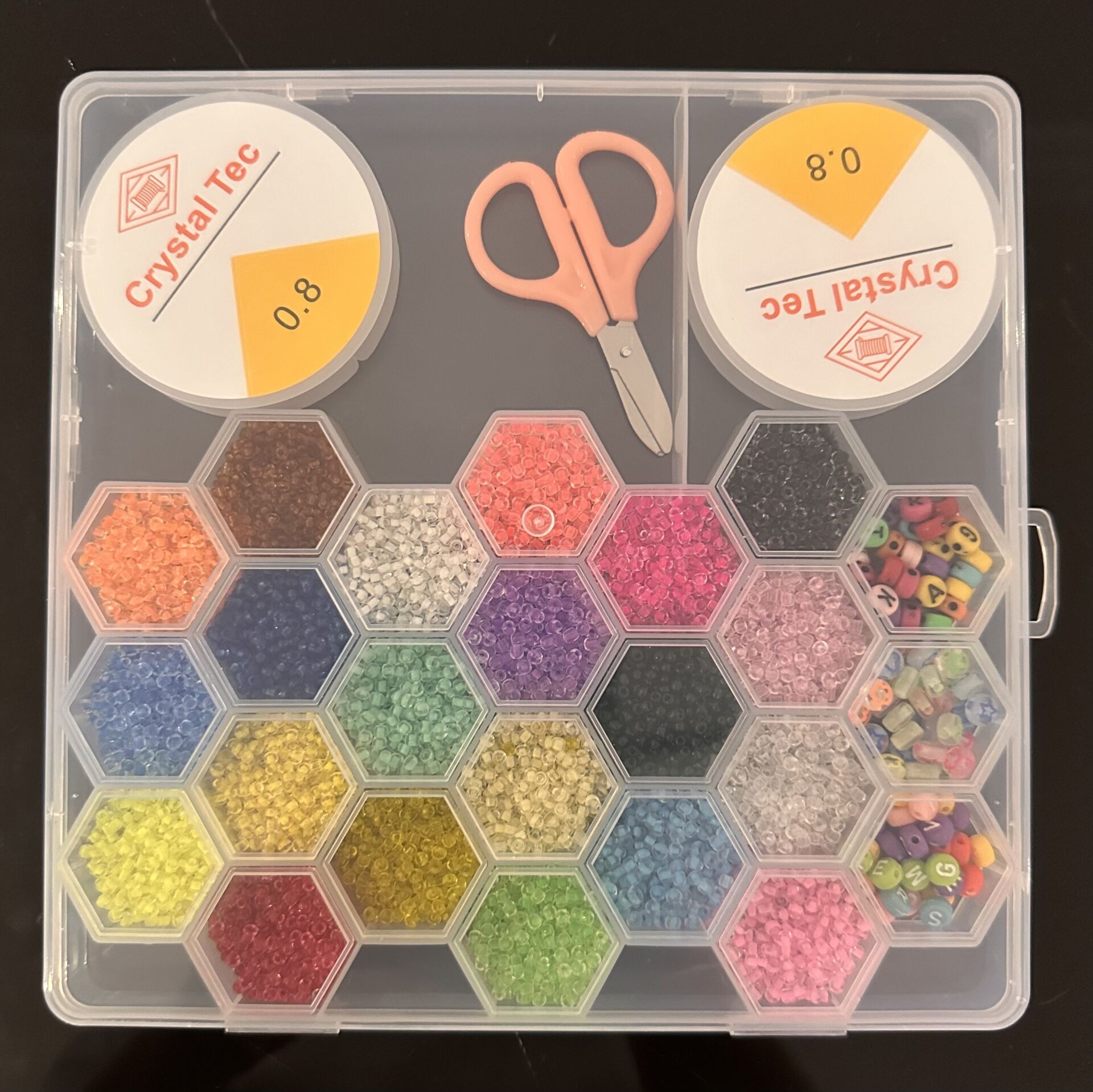 Altıgen (petek) bölmeli tasarımı sayesinde boncuklar renklerine göre düzenli şekilde saklanır ve kullanım sırasında karışmaz.